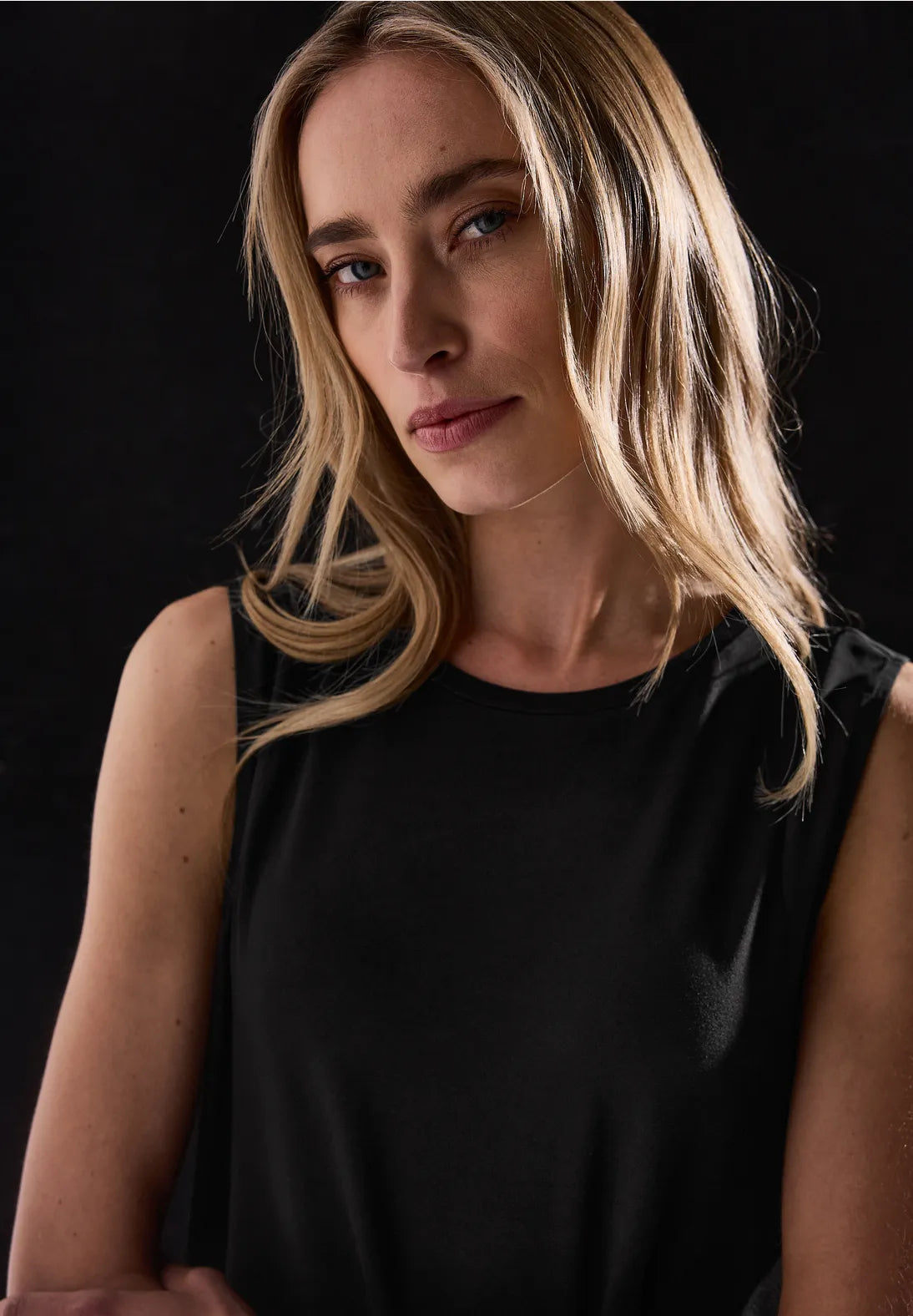 El escote redondo subraya el toque clásico,