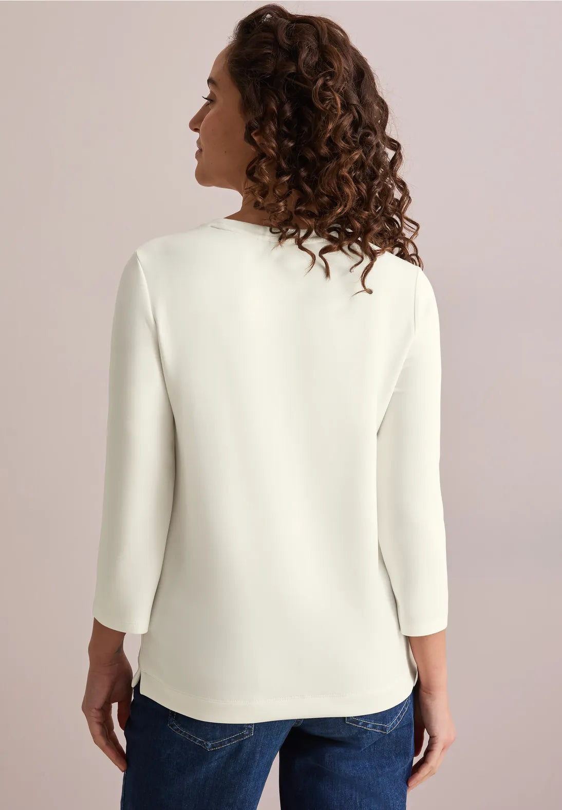cómoda de llevar. La camiseta tiene mangas 3/4 y está adornada
